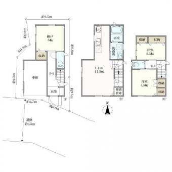 | 土地面積 | 43.52m2(13.1坪) 登記簿 | 建物延面積 | 65.20m2 |
