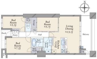 | 間取り | 3LDK | 専有面積 | 79.49m2(24.0坪) 壁芯 |