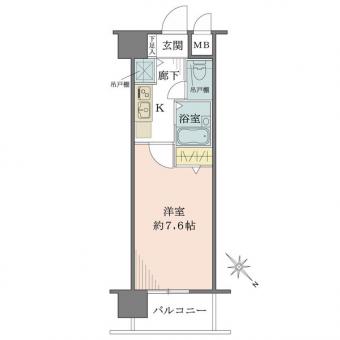 | 間取り | 1K | 専有面積 | 23.08m2(6.9坪) 壁芯 |