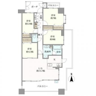 | 間取り | 4LDK | 専有面積 | 90.26m2(27.3坪) 壁芯 |
