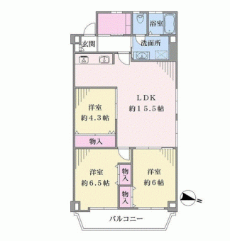 | 間取り | 3LDK | 専有面積 | 72.53m2(21.9坪) 壁芯 |