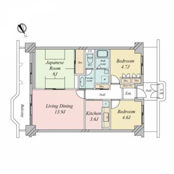 | 間取り | 3LDK | 専有面積 | 69.68m2(21.0坪) 壁芯 |