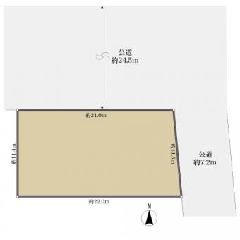 | 接道状況 | 二方 北約24.5m公道、間口:約21.0m 東約7.2m公道、間口:約11.5m | ||