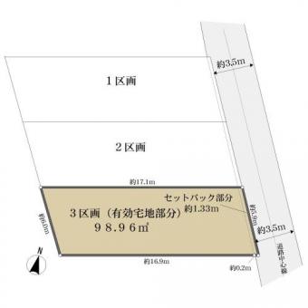 | 接道状況 | 北東約3.5m公道、間口:約5.9m | ||