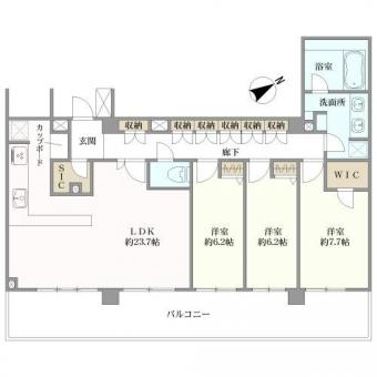 | 間取り | 3LDK | 専有面積 | 107.14m2(32.4坪) 壁芯 |