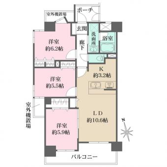 | 間取り | 3LDK | 専有面積 | 68.21m2(20.6坪) 壁芯 |
