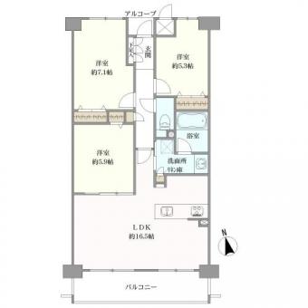 | 間取り | 3LDK | 専有面積 | 73.71m2(22.2坪) 壁芯 |