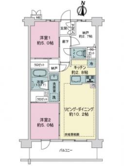 | 間取り | 2LDK | 専有面積 | 57.57m2(17.4坪) 壁芯 |