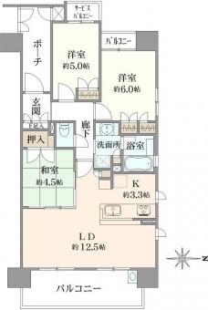 | 間取り | 3LDK | 専有面積 | 68.57m2(20.7坪) 壁芯 |