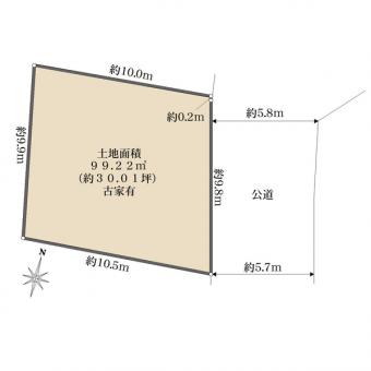 | 土地面積 | 99.22m2(30.0坪) 登記簿 | ||