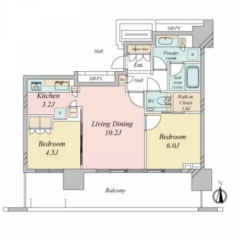 | 間取り | 2LDK | 専有面積 | 56.19m2(16.9坪) 壁芯 |