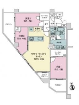 | 間取り | 3LDK | 専有面積 | 72.86m2(22.0坪) 壁芯 |
