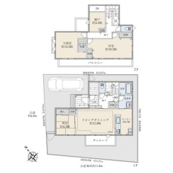 | 土地面積 | 144.77m2(43.7坪) 登記簿 | 建物延面積 | 111.12m2 |