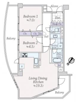 | 間取り | 2LDK | 専有面積 | 72.02m2(21.7坪) 壁芯 |