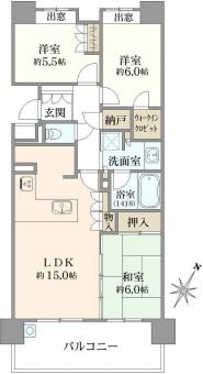 | 間取り | 3LDK | 専有面積 | 73.48m2(22.2坪) 壁芯 |