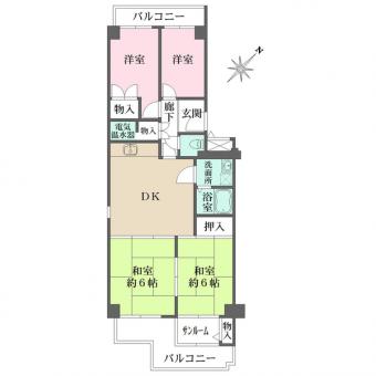 | 間取り | 4DK | 専有面積 | 72.35m2(21.8坪) 壁芯 |
