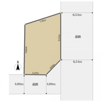 | 接道状況 | 角地 東約6.4m公道、間口:約9.2m 南約4.0m私道、間口:約4.4m(位置指定道路) | ||