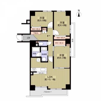 | 間取り | 3LDK | 専有面積 | 77.53m2(23.4坪) 壁芯 |