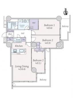 | 間取り | 3LDK | 専有面積 | 90.60m2(27.4坪) 壁芯 |