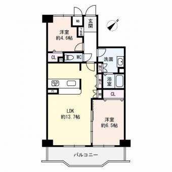 | 間取り | 2LDK | 専有面積 | 57.44m2(17.3坪) 壁芯 |