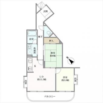 | 間取り | 2LDK | 専有面積 | 58.94m2(17.8坪) 壁芯 |