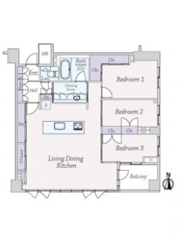 | 間取り | 3LDK | 専有面積 | 93.57m2(28.3坪) 壁芯 |