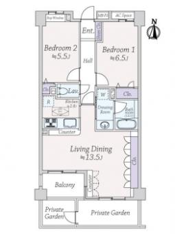 | 間取り | 2LDK | 専有面積 | 60.48m2(18.2坪) 壁芯 |