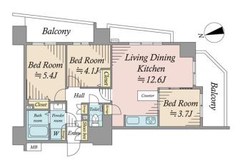 | 間取り | 3LDK | 専有面積 | 64.53m2(19.5坪) 壁芯 |