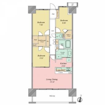 | 間取り | 3LDK | 専有面積 | 80.05m2(24.2坪) 壁芯 |