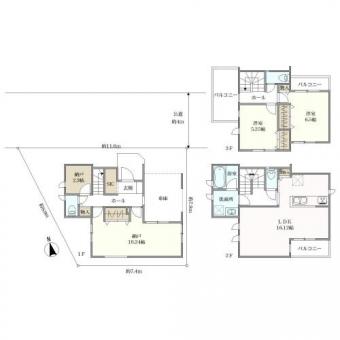 | 土地面積 | 75.84m2(22.9坪) 登記簿 | 建物延面積 | 111.57m2 車庫部分9.11m2含む |