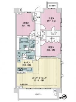 | 間取り | 3LDK | 専有面積 | 96.94m2(29.3坪) 壁芯 |