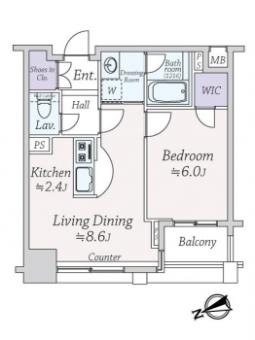 | 間取り | 1LDK | 専有面積 | 41.20m2(12.4坪) 壁芯 |