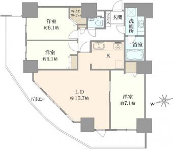 | 間取り | 3LDK | 専有面積 | 76.18m2(23.0坪) 壁芯 |