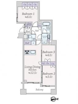 | 間取り | 3LDK | 専有面積 | 64.57m2(19.5坪) 壁芯 |