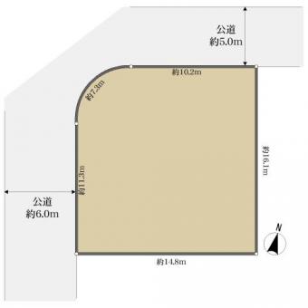 | 接道状況 | 二方 南西約6.0m公道、間口:約11.3m 北西約5.0m公道、間口:約10.2m | ||