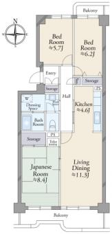 | 間取り | 3LDK | 専有面積 | 80.47m2(24.3坪) 壁芯 |