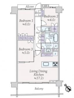 | 間取り | 3LDK | 専有面積 | 64.32m2(19.4坪) 壁芯 |