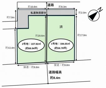 | 土地面積 | 226.92m2(68.6坪) 登記簿 別途私道負担42.20m2 | ||