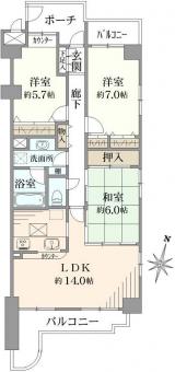 | 間取り | 3LDK | 専有面積 | 77.59m2(23.4坪) 壁芯 |