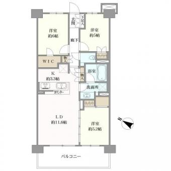 | 間取り | 3LDK+WIC | 専有面積 | 70.68m2(21.3坪) 壁芯 |