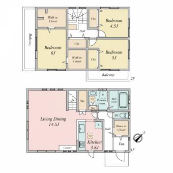 | 土地面積 | 100.01m2(30.2坪) 登記簿 別途私道負担19.00m2 | 建物延面積 | 93.56m2 |