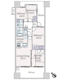 | 間取り | 4LDK | 専有面積 | 66.61m2(20.1坪) 壁芯 |