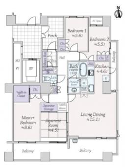 | 間取り | 4LDK | 専有面積 | 105.15m2(31.8坪) 壁芯 |