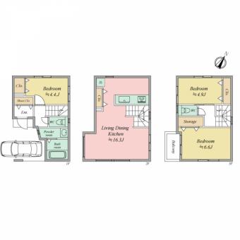 | 土地面積 | 53.15m2(16.0坪) 登記簿 別途私道負担3.80m2 | 建物延面積 | 81.13m2 |