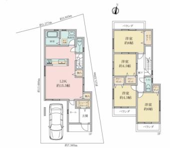 | 土地面積 | 94.90m2(28.7坪) 登記簿 | 建物延面積 | 93.56m2 |
