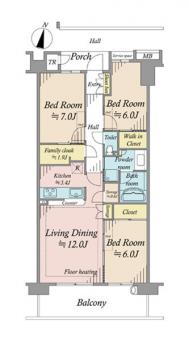 | 間取り | 3LDK | 専有面積 | 80.03m2(24.2坪) 壁芯 |