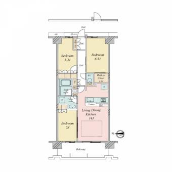| 間取り | 3LDK | 専有面積 | 68.44m2(20.7坪) 壁芯 |