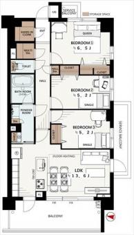 | 間取り | 3LDK | 専有面積 | 75.24m2(22.7坪) 壁芯 |