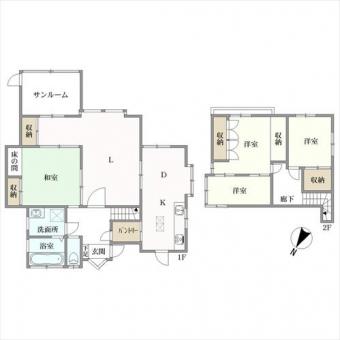 | 備考 | ●木造セメント瓦葺2階建 ●120.9平米の5LDK ●浴室に窓有 ●キッチンに窓・勝手口有※家具、調度品は売買対象外です。 ※リビング横のサンルームは、建築後に増築(38年前)しておりますが未登記です。 |