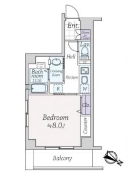 | 間取り | 1K | 専有面積 | 28.69m2(8.6坪) 壁芯 |